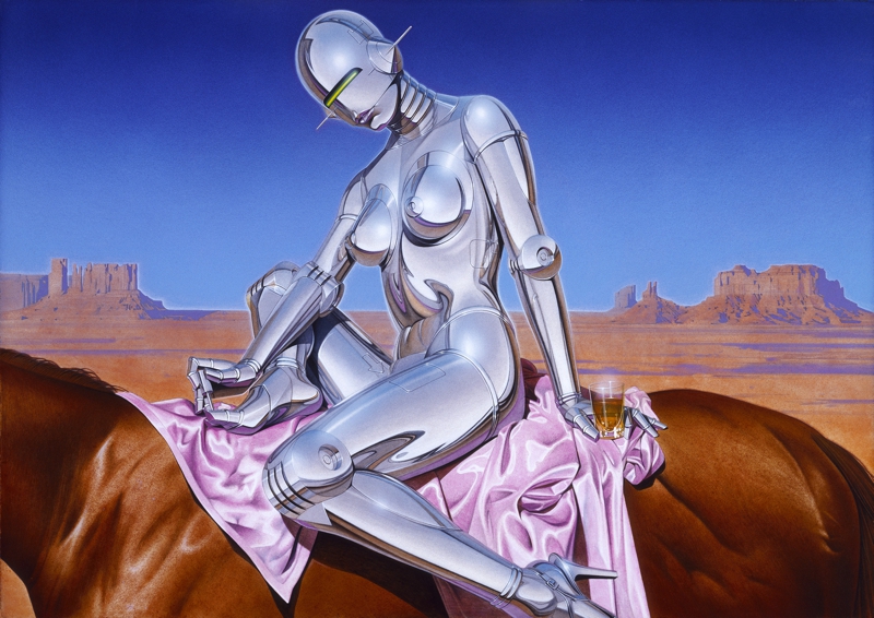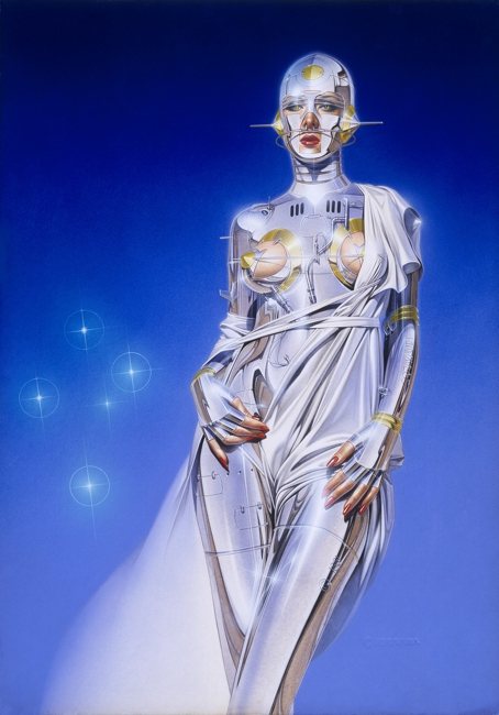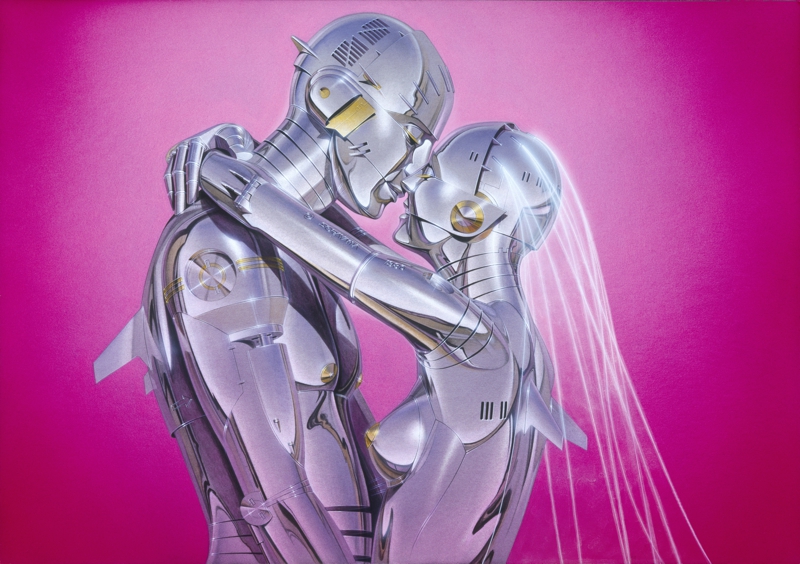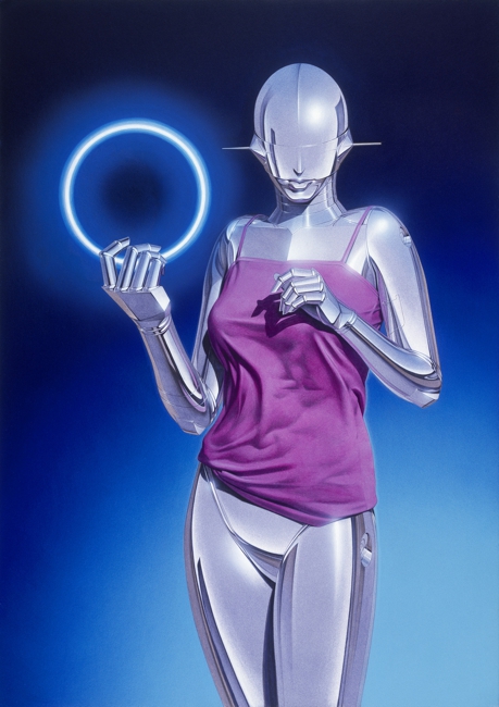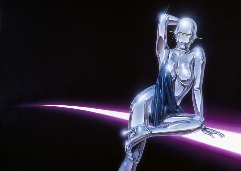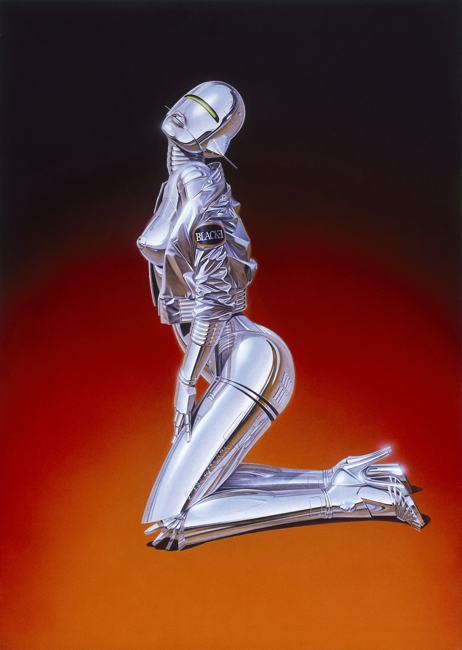 Sorayama graduated from Chubi Central Art School in Tokyo in 1969 and first spent some time working with an advertising company. Since 1972 when he became a freelance, he has been a legendary artist armed with his astounding reali metallicity stic techniques. His works of female images, pursuing of robot and eroticism are well known both inside and outside of Japan. This reputation was initially established in 1978 with the work series entitled “Sexy Robot”, which shocked people throughout the world for his artful depictions of sensual metallic qualities and reflected light. In 1999, he won both the Good Design Grand Prize from the Ministry of Trade and Industry, and the Media Arts Festival Grand Prize from the Agency from Cultural Affairs for his work with Sony on the concept design for their entertainment robot AIBO. In 2001, Sorayama received another prize for this invention, this time from the Asahi newspaper, and in this same year the 1st generation AIBO was added to the permanent collections of the Smithsonian Institute and the Museum of Modern Art. As if that weren’t enough, the internationally famous rock band Aerosmith collaborated with Sorayama on the artwork for the cover of their 2001 album Just Push Play.