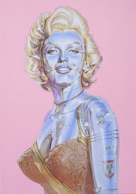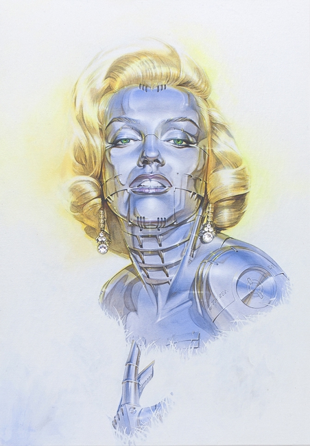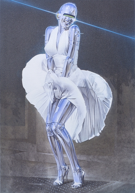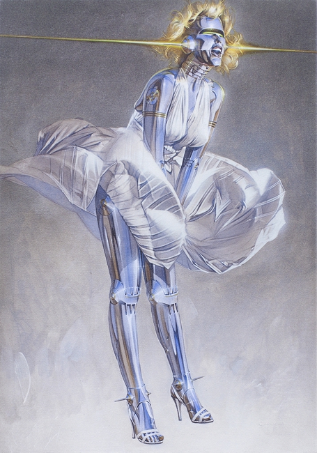 Sorayama graduated from Chubi Central Art School in Tokyo in 1969 and first spent some time working with an advertising company. Since 1972 when he became a freelance, he has been a legendary artist armed with his astounding reali metallicity stic techniques. His works of female images, pursuing of robot and eroticism are well known both inside and outside of Japan. This reputation was initially established in 1978 with the work series entitled “Sexy Robot”, which shocked people throughout the world for his artful depictions of sensual metallic qualities and reflected light. In 1999, he won both the Good Design Grand Prize from the Ministry of Trade and Industry, and the Media Arts Festival Grand Prize from the Agency from Cultural Affairs for his work with Sony on the concept design for their entertainment robot AIBO. In 2001, Sorayama received another prize for this invention, this time from the Asahi newspaper, and in this same year the 1st generation AIBO was added to the permanent collections of the Smithsonian Institute and the Museum of Modern Art. As if that weren’t enough, the internationally famous rock band Aerosmith collaborated with Sorayama on the artwork for the cover of their 2001 album Just Push Play.